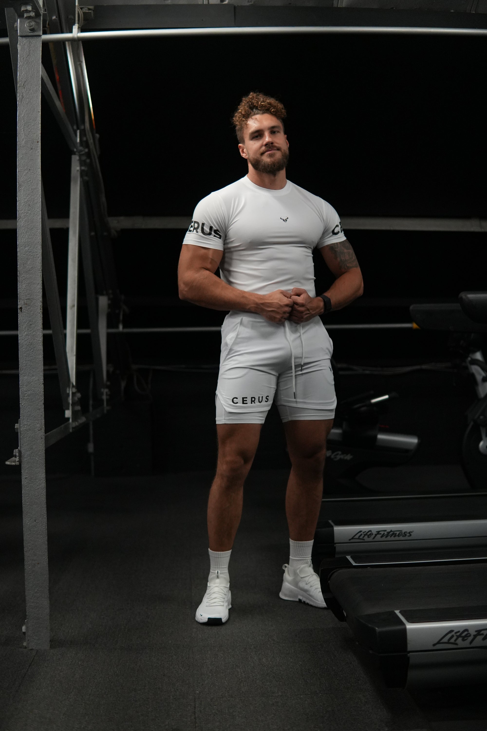 Explore Cerus's range of men's gym and workout shorts. Our shorts range includes bodybuilding shorts, running shorts, tailored shorts and casual shorts. Perfect for gym sessions and rest days, pair with a hoodie or t-shirt for ultimate comfort.